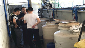 某五金加工廠清洗廢水破乳劑調(diào)試現(xiàn)場